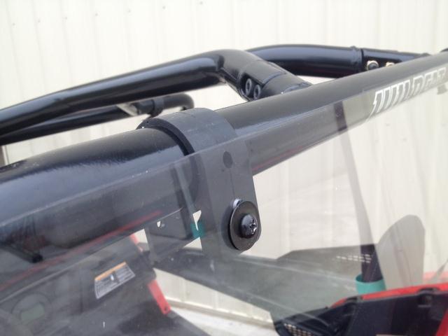 This polycarbonate cab back protects you from dust and rain and can be easily removed in seconds using rubber "Fast Straps."